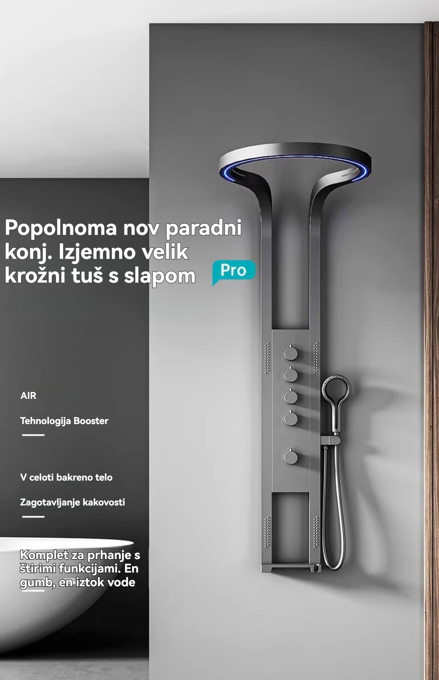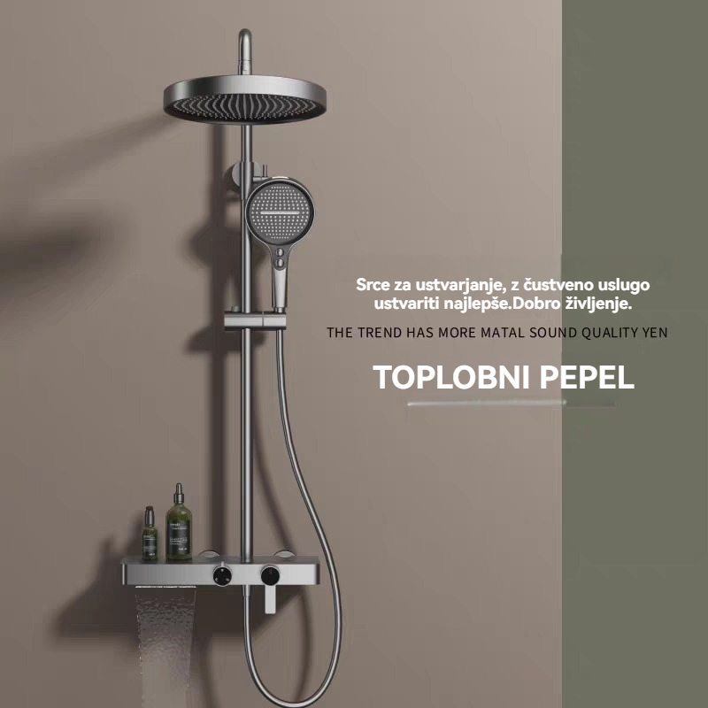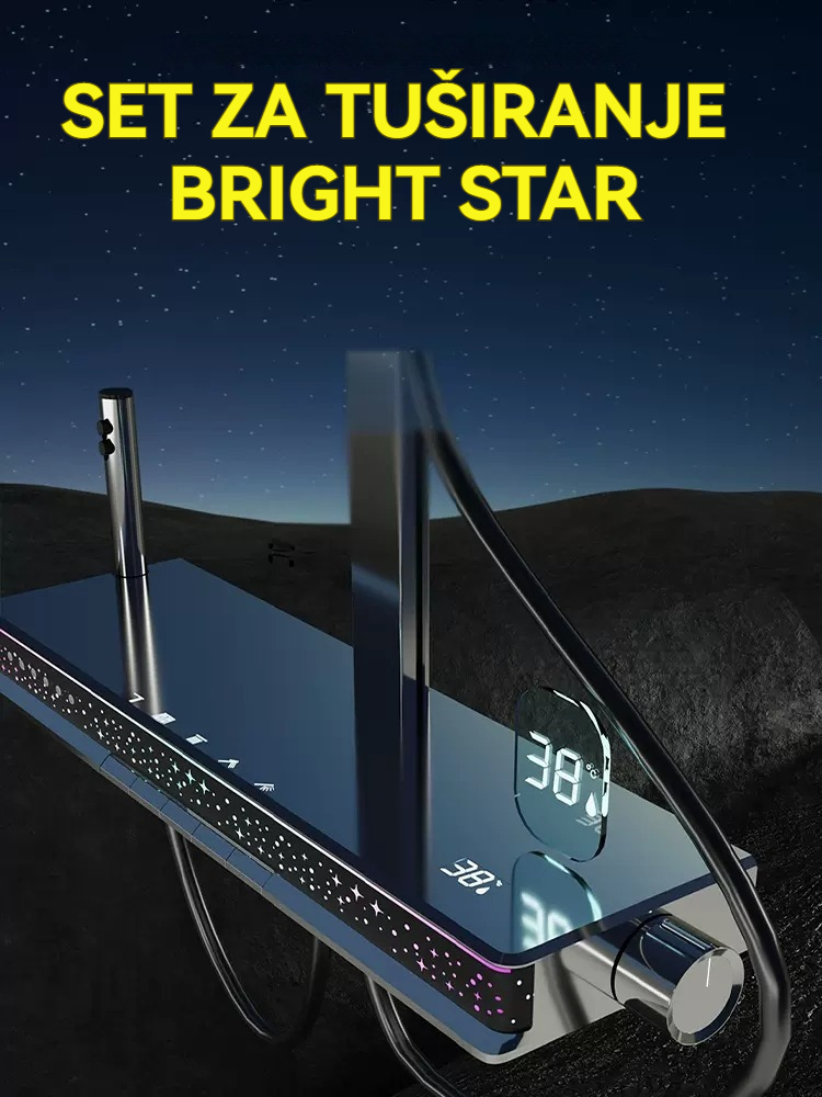 Komplet tuš pipe s 5 funkcijami, LED tuš glavo z rahlim dežjem, digitalnim zaslonom in masažnimi šobami